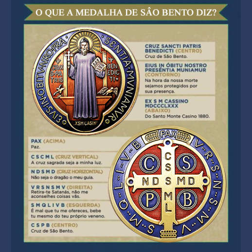 A esta medalha se atribuem poder e remédio, seja contra certas enfermidades do homem, ou contra os males que podem afetar o espírito, como as tentações do poder do mal!